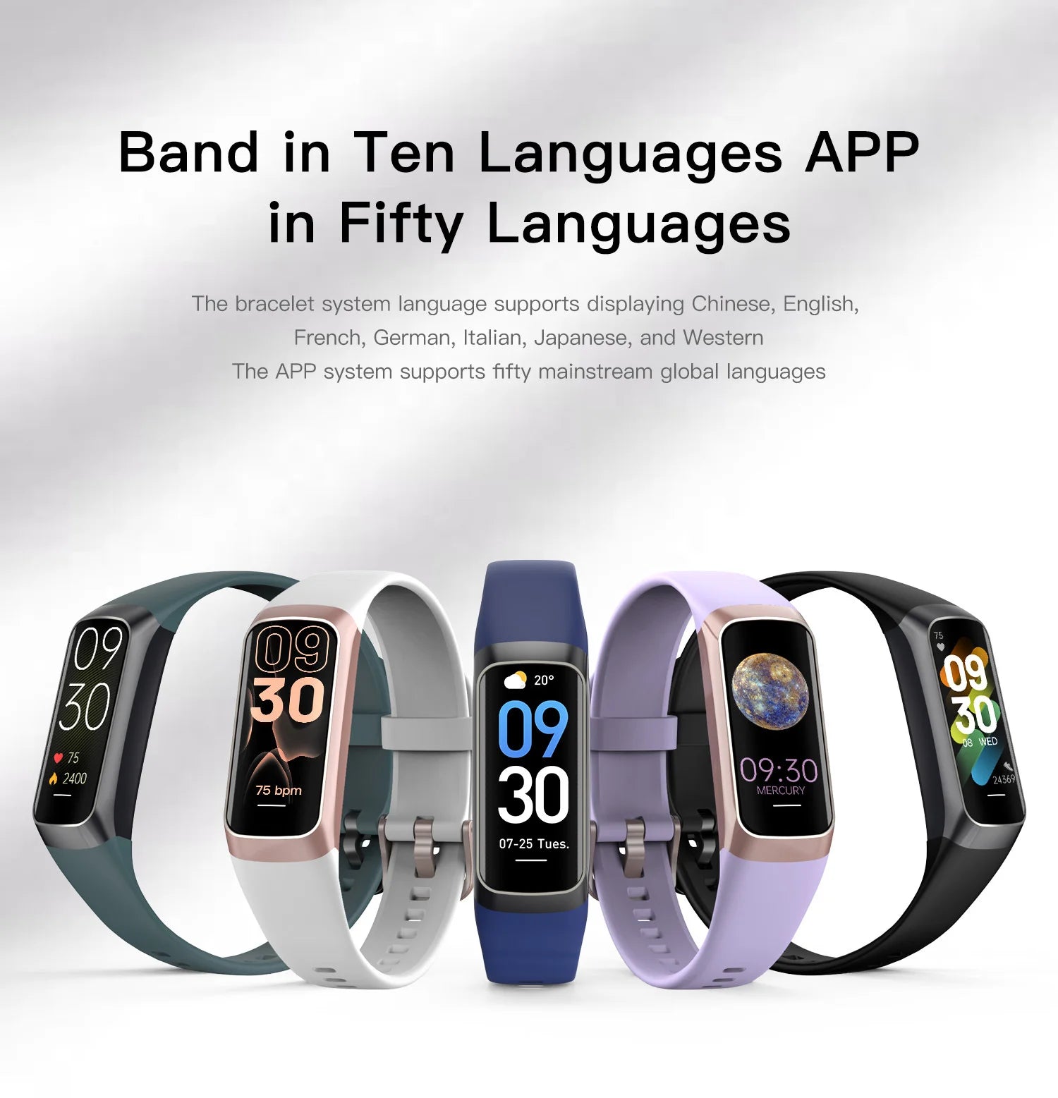 Smart Functions: Synchronises notifications (message reminder), supports multiple band languages, and includes a family account for remote health monitoring.