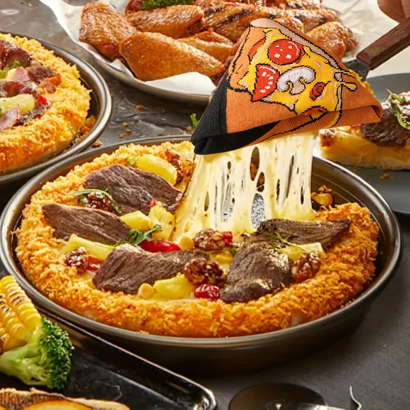 1 pair of stylish unique and interesting pizza-patterned men's and women's Christmas gift socks suitable for all seasons