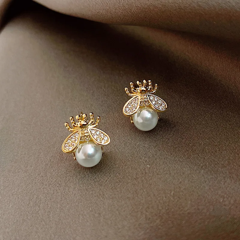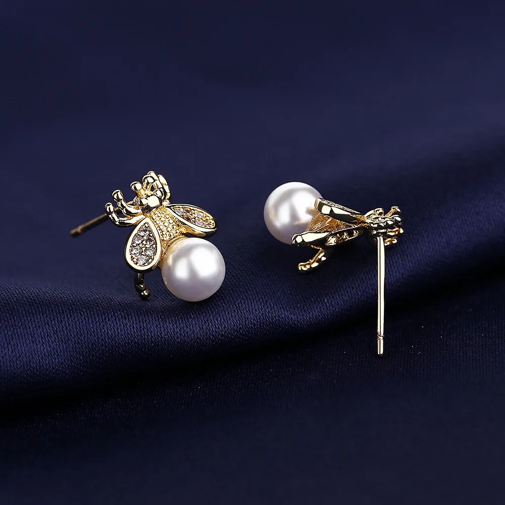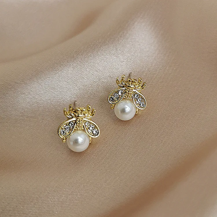 Bee pearl earrings are a small, delicate and playful piece of jewellery to add a little quirk to your modernist style.