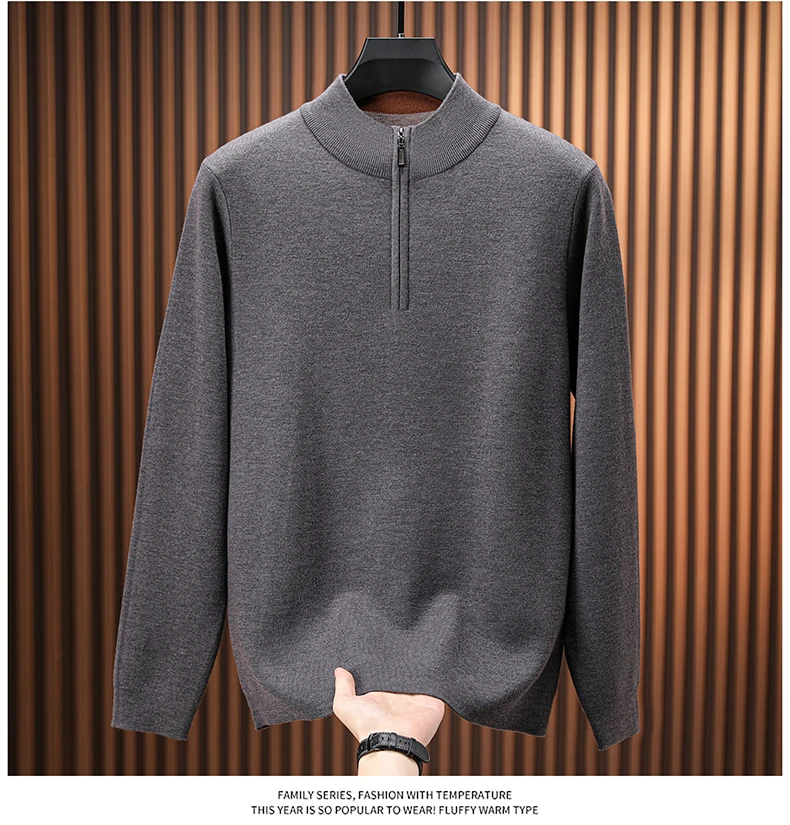 Men's Stand Collar Sheep Wool Half Zip Knit