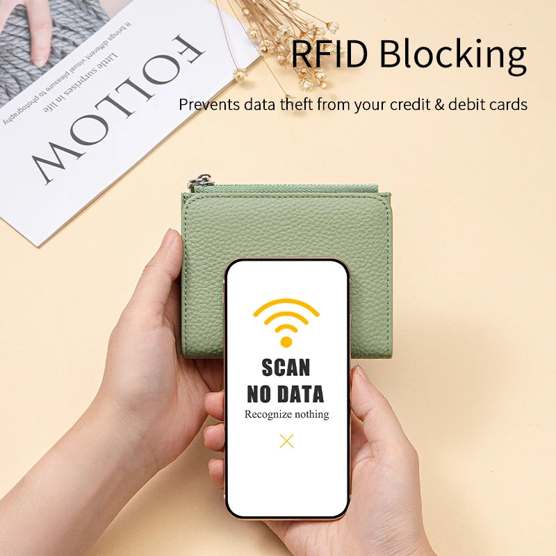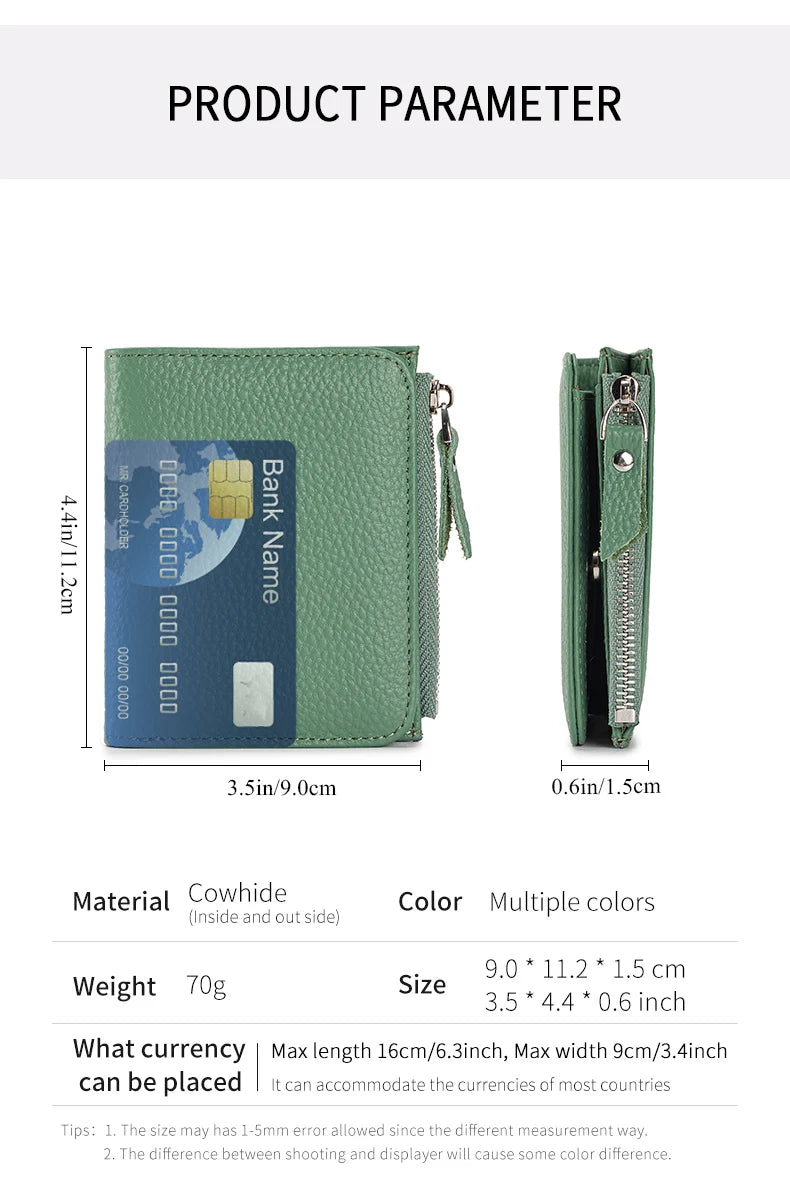 This exquisite, pebbled genuine cow leather wallet redefines daily elegance. Its sleek, minimalist silhouette and contemporary color palette (like the captivating Sage Green shown) offer a sophisticated nod to understated luxury. Designed to seamlessly integrate into your personal aesthetic, it maintains a thin profile that complements any handbag or pocket, ensuring your look remains polished and uncluttered.
